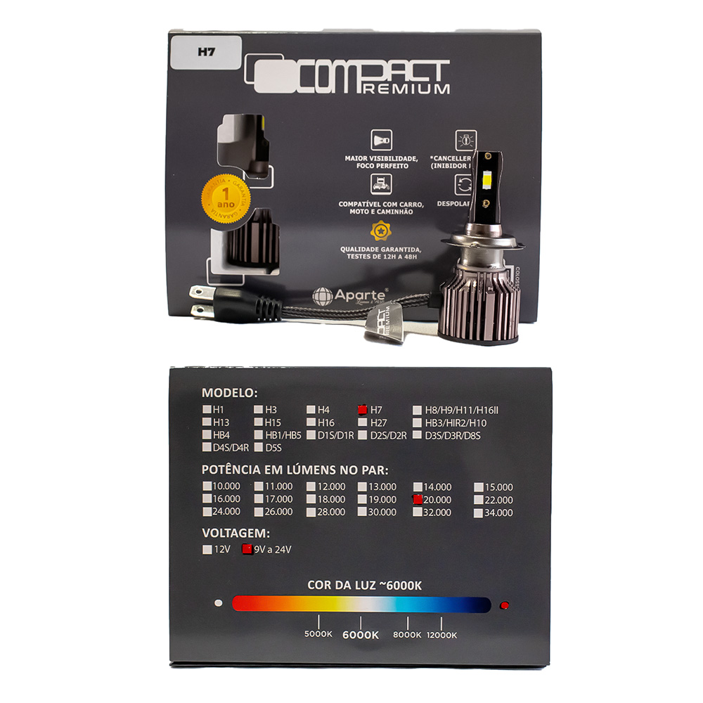 1 par H7 Compact Premium com 1 ano de garantia;