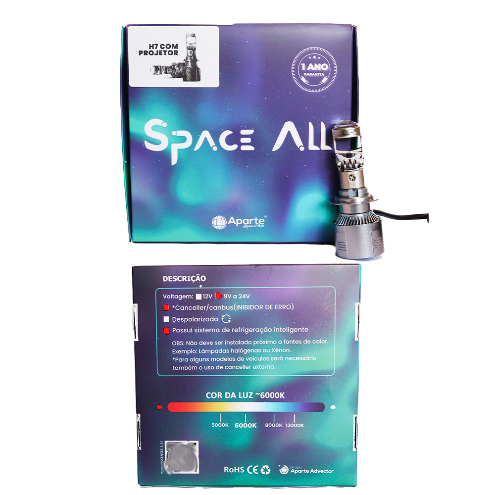 1 par H7 Com Projetor Space All 30.000 Lúmens