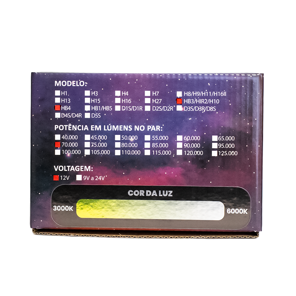 Ajuste a temperatura de cor de 3000K a 6000K e personalize sua experiência de condução — do amarelo para neblina ao branco frio para máxima visibilidade.
